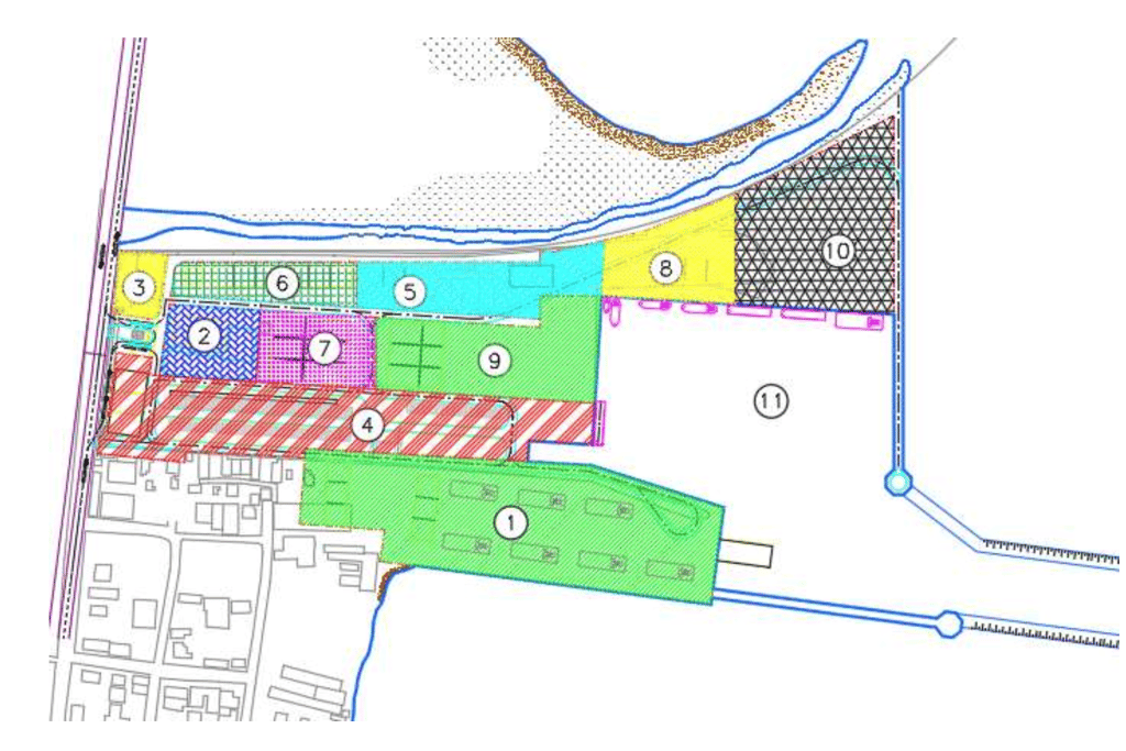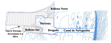 The expansion project contemplates a filling of 160,000 m³ in two main areas: the north side for the industrial plant and the south side for the shipyard. These works respect the natural sedimentation of the Cañada La Silva and elevate the terrain to a height of +2.00 meters above the lake level.
